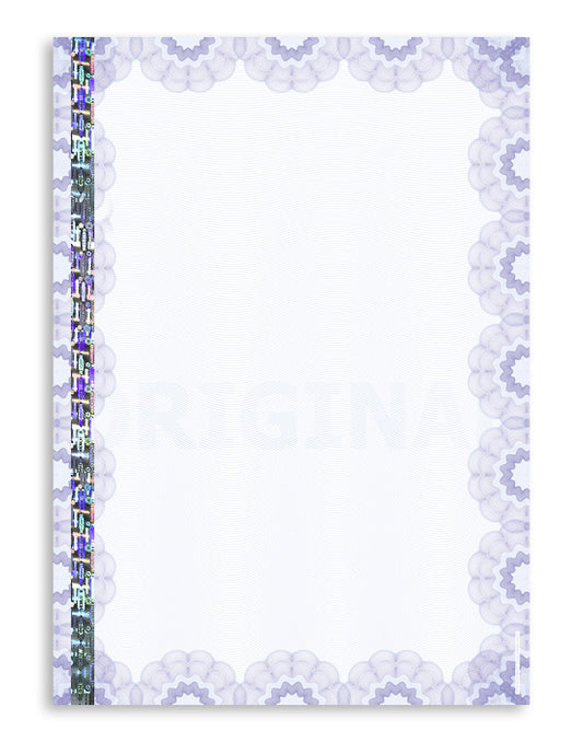 Form on Security Paper DIN A4, Sujet C “Baroque”, with security hologram (OVD)